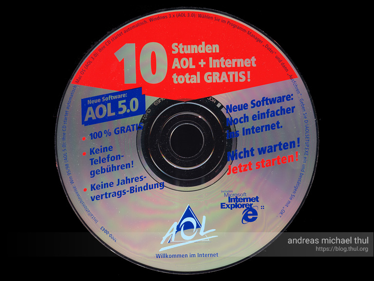 Alles in allem eine irrsinnige Ressourcen-Verschwendung, die sogar zu einer Initiative namens “No More AOL CDs” geführt hat.