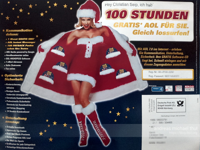 Aber nicht nur in den Medien wurde massiv geworben - beim Einkauf oder beim Gang zum Briefkasten konnte man AOL ebenfalls kaum entgehen, denn