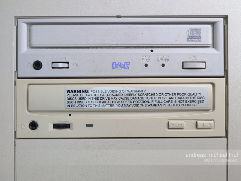 Dagegen wirkt der obendrüber verbaute CD-Brenner (ja, auch sowas gab’s mal) richtig langweilig und unspektakulär.